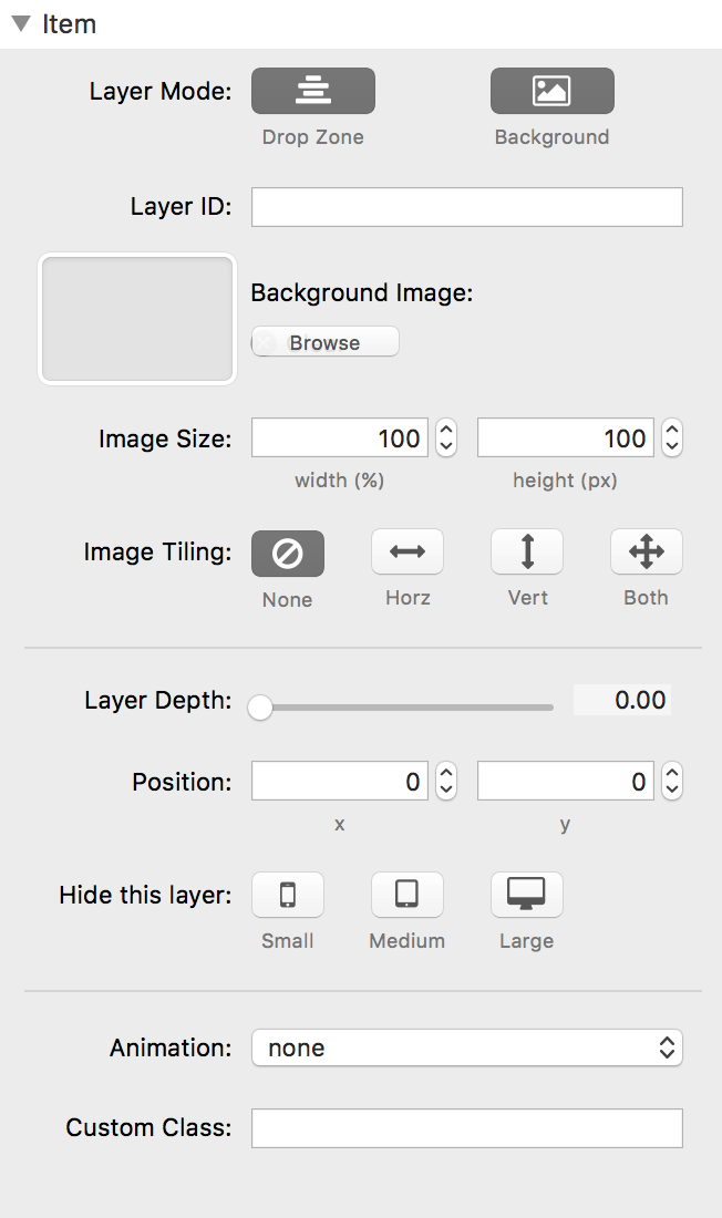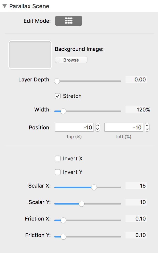 We can control the amount of motion for each layer, position each layer on the xy axis, set each layer's dimension, add animation and even use custom classes of our own. The interface is simply gorgeous, allowing us to work on our scenes in grid or stack modes.