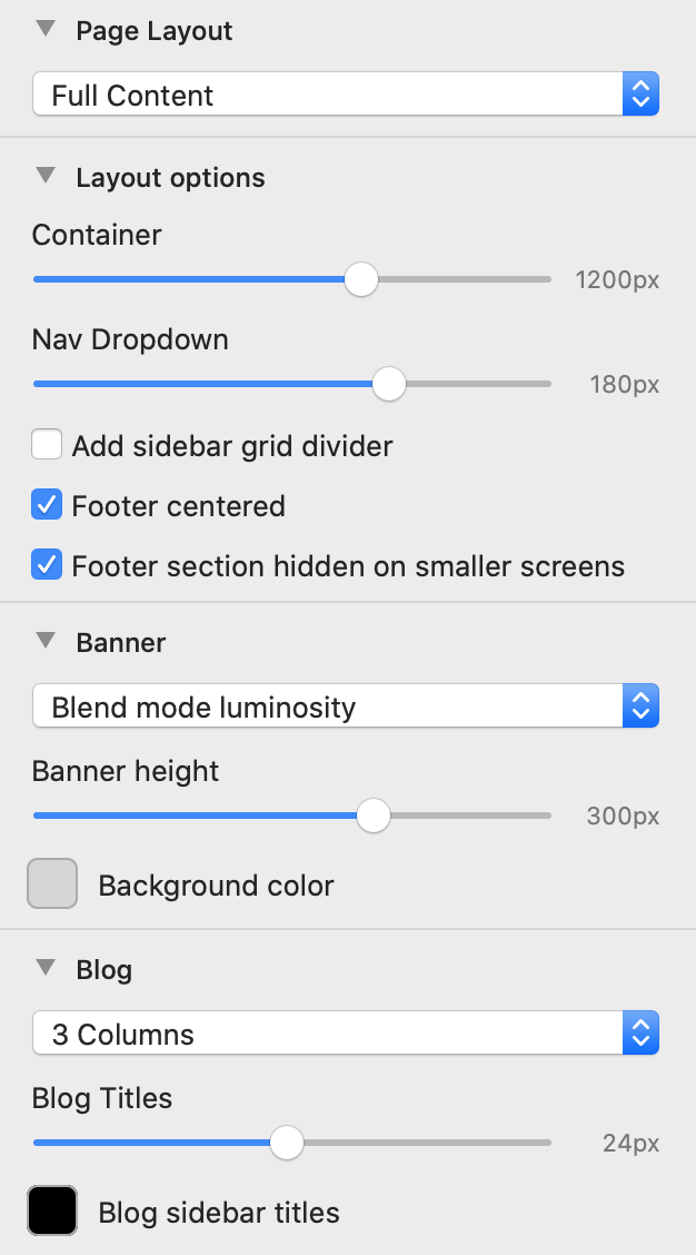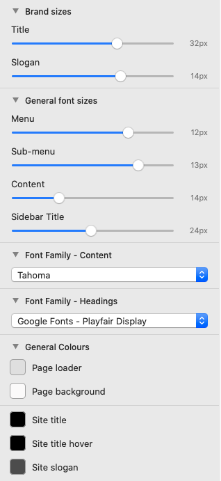 32 font-family options for Content and Headings: 16 Web Safe and 16 Google Fonts