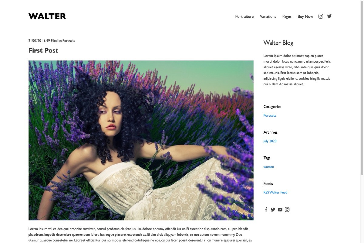 Never used a blog before? Then you definitely will with Walter. The gorgeous blog requires no extra addon, that's the one already included in RapidWeaver but presented in a new, fresh design. You can customize the layout in many ways, including column count.